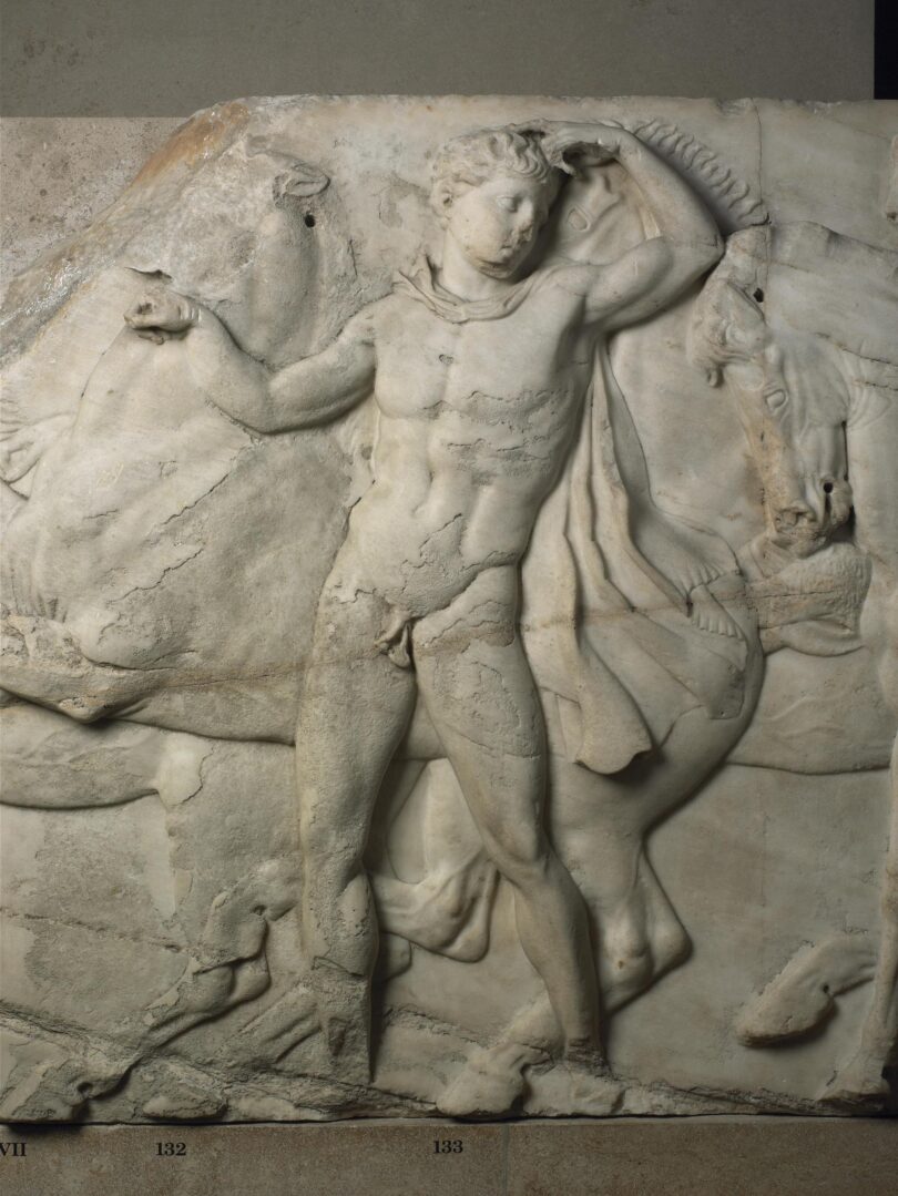 Als der Architekt Bernard Tschumi das Akropolis Museum entwarf, nahm er den Athener Burgberg genau in den Blick. Sein 2009 eingeweihtes Museumsgebäude gegenüber der Akropolis setzt sich aus zwei gegeneinander verschobenen Bauteilen zusammen, dessen oberes exakt parallel zur Lage des Parthenon ausgerichtet ist und genau den Platz bietet, um den Fries vom Haupttempel Athens lagerichtig aufnehmen zu können. Wenn er denn in Athen wäre. Tatsächlich aber befindet sich mehr als die Hälfte des Frieses, zugleich der überwiegende Teil des noch erhaltenen Tempelschmucks, im Britischen Museum in London.