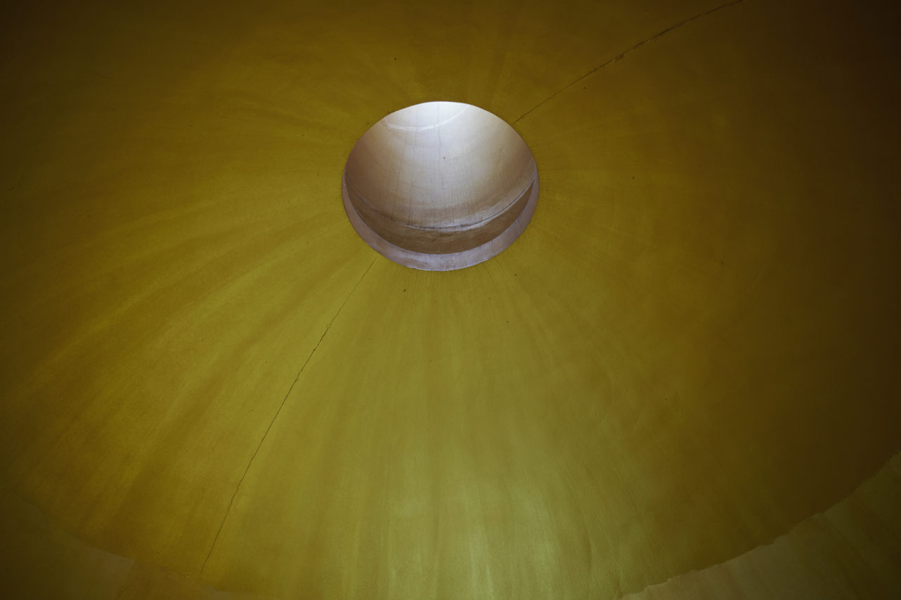 Zurück auf dem Rad, kommen wir richtig in Fahrt. Gute zehn Kilometer, die meiste Zeit am Fluss entlang, sind es bis zum Hof Emscher-Auen. Ohne es besonders zu merken, überschreiten wir eine Stadtgrenze, wir befinden uns jetzt in Castrop-Rauxel, ein eher ungewöhnliches Ausflugsziel. In dem sanierten Hof ist am Wochenende ein Café geöffnet, auf dem Gelände gibt es zwei Kunstinstallationen. Massimo Bartolinis Black Circle Square, inspiriert von Kasimir Malewitschs „Schwarzem Kreis“, und das Parkhotel Inside-Outsite von Andreas Strauss: drei einstige Kanalröhren mit Guckloch zum Übernachten samt gelber Vogelbeobachtungsstation, in der mit Blick über das Castrop-Rauxeler Auenland unser erster Tag leise endet.