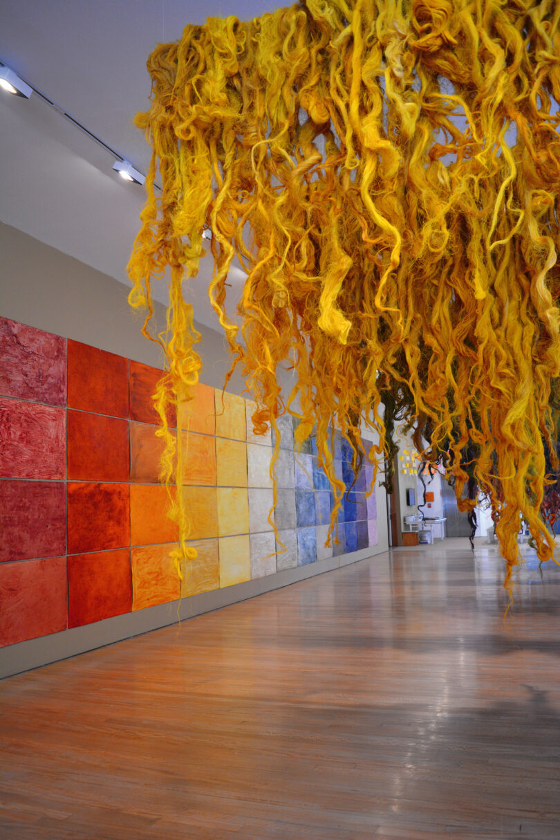 Kaum haben wir am Flughafen, der den verheißungsvollen Namen „El Dorado“ trägt, den Koffer vom Gepäckband gehievt, leuchten uns die bunten Bilder der kolumbianischen Künstlerin Beatriz González entgegen. Das vor einem Jahr ins Leben gerufene Projekt „Volarte“ soll den vielen Reisenden südamerikanische Kunst und Kultur näherbringen. Auf 360-Grad-Screens, die in der Flughafenhalle aufgestellt sind, tauchen wir ein in die Bildwelten der 1938 geborenen Malerin, die in ihrer Heimat sehr verehrt wird. Im Jahr 2017 war sie auf der Documenta 14 zu sehen. Doch hinter ihren farbenfrohen Masken verbirgt sich stets auch Kritik am politischen System ihres Landes, das auf eine lange Geschichte von Gewalt und Korruption zurückblickt.
