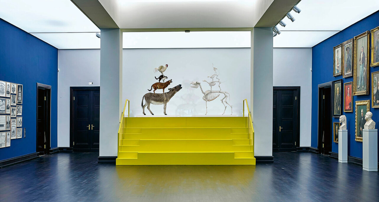 Die Dramaturgie folgt dem chronologischen Prinzip, das durch Themenräume ergänzt wird, die Fragen wie Glauben und Krieg, Welthandel und Kolonialismus, Natur und Globalisierung nachgehen – im Spiegel der Hansestadt. So verblüfft etwa im Forum „Bremen und die Welt“ eine Komposition der Bremer Stadtmusikanten aus Präparaten, „Love Saves Life“ (1995), der ein Standbild aus Skeletten, „Love Lasts Forever“ (1997), gegenübergestellt ist, ein Werk des italienischen Künstlers Maurizio Cattelan. Oder Raum 5, der sich mit dem globalen Handel befasst. Seestücke und Stillleben der Niederländer Jan van Goyen, Jacob Ochtervelt oder Rachel Ruysch belegen, dass bereits im 17. Jahrhundert Handel mit Übersee stattfand. Die im Raum hängende Kogge „Cui Bono“ von Hew Locke (2017) ergänzt den Erzählstrang um die Folgen des Kolonialismus und der weltweiten Migrationsbewegungen. Dazu sorgen intensive Wandfarben, mutige Hängungen und ungewöhnliche Inszenierungen von Gemälden und Skulpturen immer wieder für ästhetische Überraschungen.