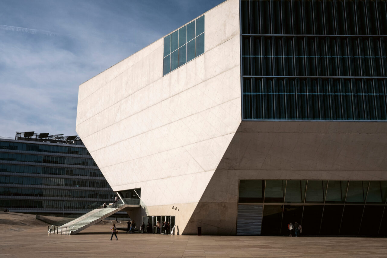 Zurück nach Westen, zur Rotunda da Boavista. Auf dem hellen Travertinplatz scheint ein Meteorit eingeschlagen. So jedenfalls sieht das Konzerthaus Casa da Música aus, Portos vielleicht aufregendstes Gebäude. Das polygonale Gebilde aus Sichtbeton, Aluminium und Glas ist ein Meisterwerk der holländischen Architekten Rem Koolhaas und Ellen van Loon. In Sälen und Gängen werden portugiesische Elemente wie Gold und Fliesen aufgenommen. Die Akustik ist Renz van Luxembourg zu verdanken, eine Anregung für einen Konzertabend.