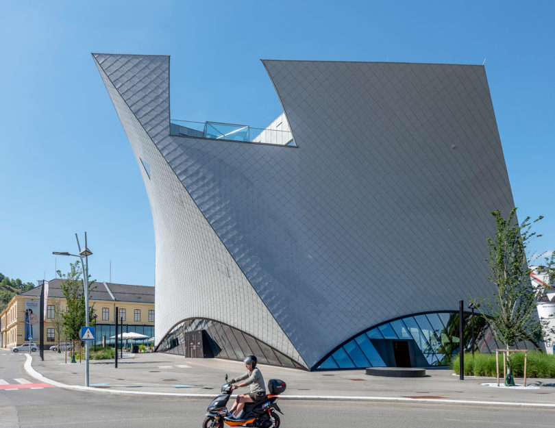 Die unterirdische Verbindung zur Landesgalerie Niederösterreich deutet an, dass sich beide Häuser ergänzen. Zuerst muss man jedoch das neue Kunstmuseum oberirdisch sehen. Im historischen Ambiente ragt der extravagante Bau der Architekten Marte und Marte als ein mutiges Signal an die Gegenwart auf. Die Zinkhülle des elegant gedrehten Kubus setzt sich aus mattgrauen Metallschindeln zusammen, eine Referenz an die Kremser Dachlandschaft. Statt einer Dauerausstellung bildet die Landesgalerie in ihren Räumen das breite Spektrum des niederösterreichischen Kunstschaffens ab. Künftig will sie noch stärker zur Bühne für heimische und weniger bekannte Künstler werden.