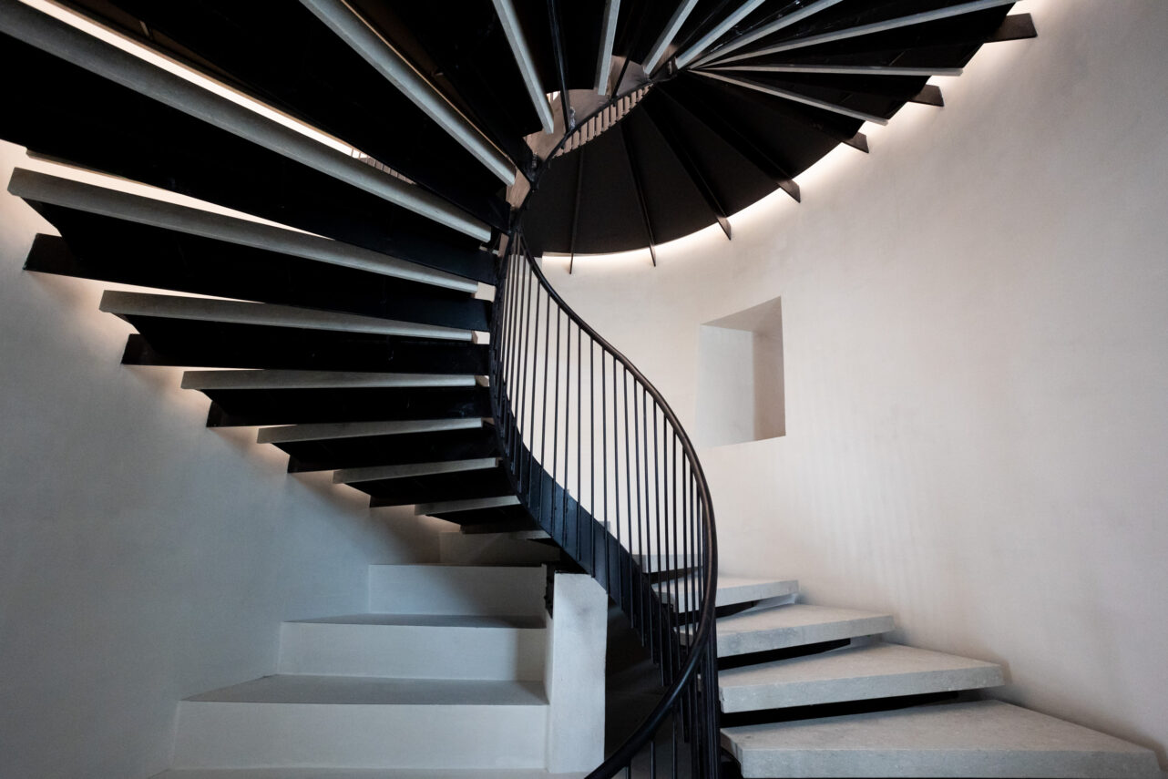Wenn man schon am Guglie-Ufer ist, liegt der Besuch der neusten Attraktion in Cannaregio nahe. Wir laufen über die Strada Nuova in Richtung Rialto zum Palazzo Diedo am Campo Santa Fosca, einem riesigen Palast, der um 1710 bis 1720 von dem Baumeister Andrea Tirali erbaut wurde und auf fünf Stockwerken mit einer Oberfläche von rund 4.000 Quadratmetern zwei hohe Hauptgeschosse und ein Mezzaningeschoss umfasst. Nach jahrelangem Leerstand wurde das Gebäude von der Stiftung Berggruen Arts & Culture mit dem venezianischen Architekten Silvio Fassi umfangreich renoviert und zur Kunstbiennale 2024 erstmals dem breiten Publikum vorgestellt. In diesem Jahr kann man neben der Ausstellung „The Next Earth. Computation, Crisis, Cosmology“, kuratiert von Benjamin Bratton, Nicholas de Monchaux und Ana Miljacki (bis 23. November 2025), einem offiziellen Collateral-Event der Architekturbiennale, auch einige der In-Situ-Installationen sehen, die Nicolas Berggruen mit dem venezianischen Direktor Mario Codognato in Auftrag gegeben hat. Spektakulär ist Carsten Höllers „Venice Inclined Oval Staircase“, welche die beiden Hauptgeschosse miteinander verbindet. Geschaffen nach dem Vorbild der scala ovata, der muschelförmigen ovalen Wendeltreppe des venezianischen Renaissancebaumeisters Andrea Palladio, bewirkt sie durch eine innovative Neigung um fünf Grad eine kaum sichtbare, aber deutlich spürbare Unsicherheit. Aber auch die Installation „Omen“ von Urs Fischer mit 600 gläsernen verspiegelten Tropfen von Berengo Studio auf Murano, die Deckengemälde verschiedener Künstler im Erdgeschoss – inklusive des Kassenbereichs – und die Fußbodengestaltung des in Los Angeles lebenden Neapolitaners Piero Golia lohnen den Besuch (das Mezzaningeschoß ist derzeit nicht geöffnet, dort soll ein Café entstehen).