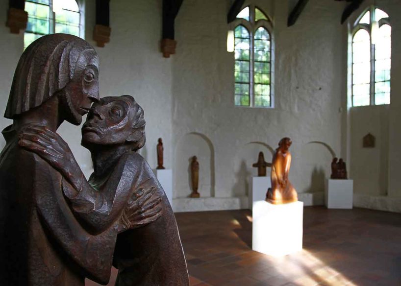 In Güstrow wollen wir mehr von Barlach bewundern. Wie beredt Holz sein kann, beweisen die Plastiken des Multitalents an zwei Standorten: im Atelierhaus, seiner früheren Wirkungsstätte, wo die Barlach-Stiftung zudem für die Weggefährtin Käthe Kollwitz vom 1. Mai bis 31. Juli eine Ausstellung zum 150. Geburtstag zeigt. Und in der Gertrudenkapelle, die als feierliche Gedenkstätte für den im Nationalsozialismus verfemten Bildhauer dient.