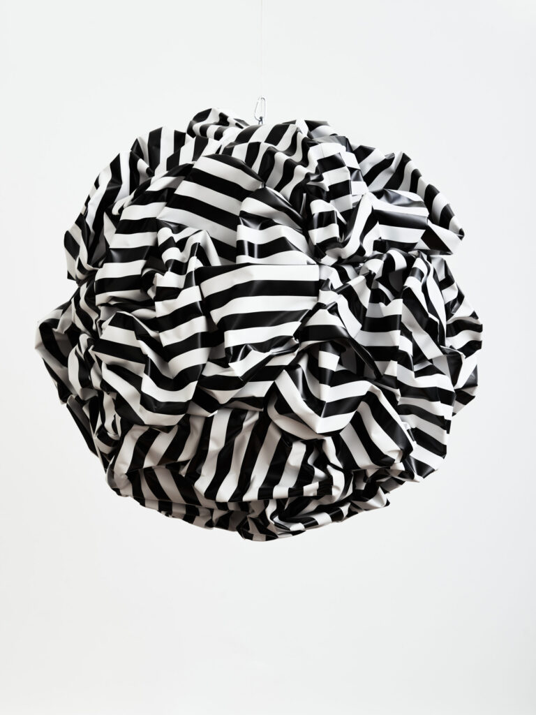 Esther Stocker, Planeten und Gedanken, 2024, bedruckte Folie auf Holzunterkonstruktion