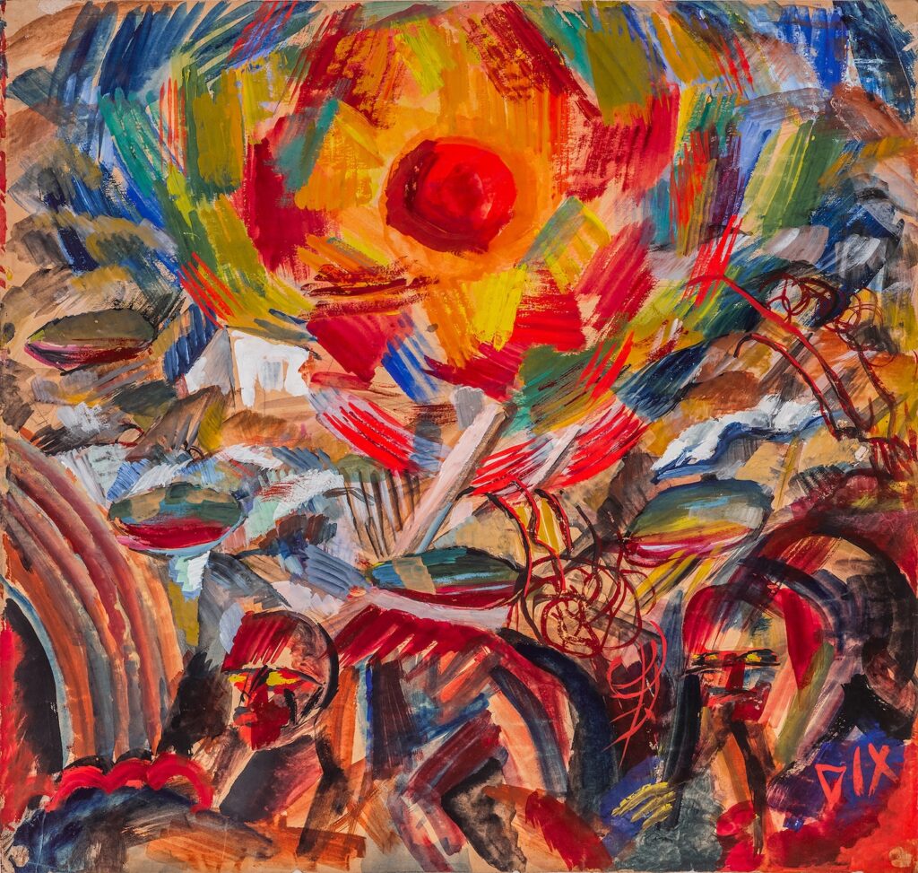 Otto Dix: „Abendsonne (Ypern)“, 1918, Gouache, Stiftung Sammlung Walther Groz; © VG Bild-Kunst, Bonn 2025, Foto: Frank Luger / Art Photography