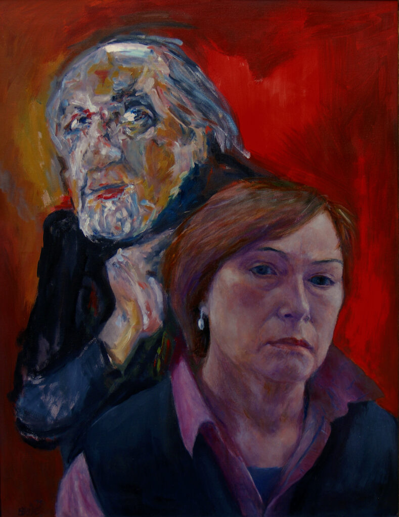 Gudrun Brüne: »Selbst mit Bernhards Selbstbildnis«, 2011, Öl auf Leinwand, 80 x 60 cm; © Gudrun Brüne