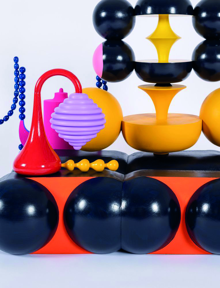 Es sprudelt nur so von Farben und Formen. Die junge Künstlerin Maja Behrmann (*1994) deutet den Innenraum um zu sensationellen Raumkunstwerken mit hoher Ereignisdichte, in denen großflächige Textilien, in starken Farben lackierte, teils gedrechselte Skulpturen aus Holz, kontrastreiche Muster, Collagiertes und Gemaltes gegenseitig um Aufmerksamkeit wettzueifern scheinen.