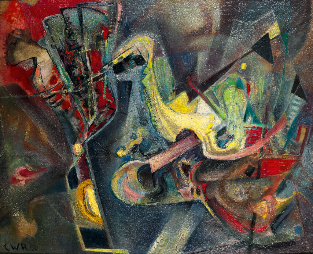 Caspar Walter Rauh, o.T, 1950, Öl auf Sperrholz, 43,5 x 53 cm,