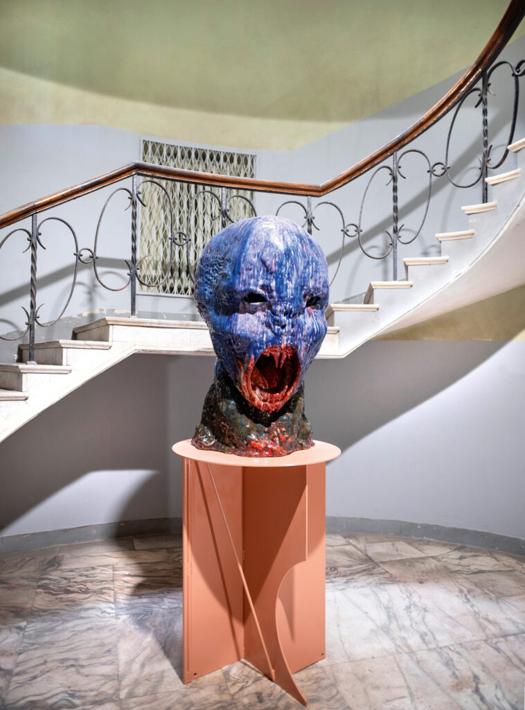 Olaf Brzeski, 2023/24, Keramik, pulverbeschichteter Stahl, Foto: Michał Kaczyński
