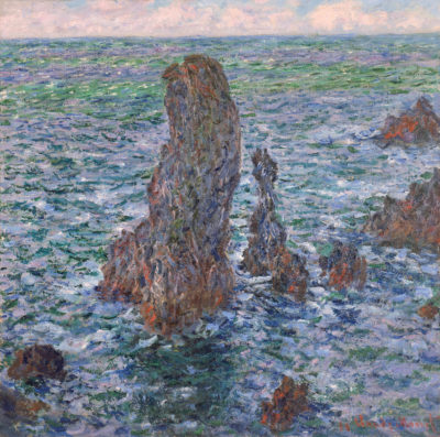 Abb.: Claude Monet, Die Felspyramiden von Port-Coton, 1886, © Remagen, Arp Museum Bahnhof Rolandseck, Sammlung Rau für UNICEF, Foto: Peter Schälchli