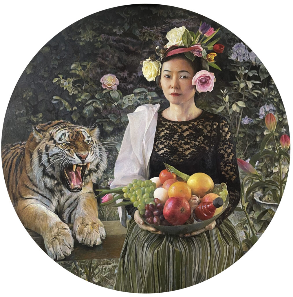 Wu Zhi: „Beauty and beast“, 2022/23, Öl auf Leinwand, Durchmesser 100 cm; © Wu Zhi
