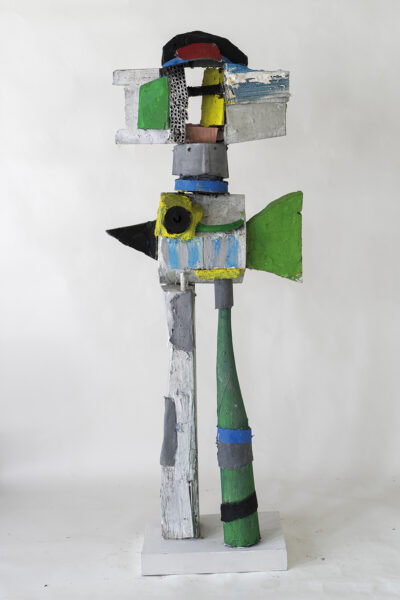 Der Bildhauer und Maler kreiert Geschöpfe zwischen Ding, Menschwesen, Roboter. Seine bemalten Plastiken sind aus Materialresten - Holz, Pappe, Metall. Sie sind gleichsam Trägerstoff für abstrakte Malerei und werden durch die Farbsetzungen lebendig und bewegt. Die Verbindung zwischen Plastik und Malerei kennzeichnen auch seine Bilder. Collagen und Gemälde haben eine räumliche Dimension. Den mit der Abstraktion spielenden Werken hafte stets etwas Wesenartiges an. Menno Fahls großes Thema ist die Figur.