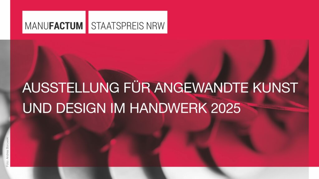 Seit 1963 zeichnet die nordrhein-westfälische Landesregierung alle zwei Jahre herausragende Leistungen im Kunsthandwerk und im Design mit dem „Staatspreis MANUFACTUM für angewandte Kunst und Design im Handwerk“ aus, der mit 60.000 Euro Preisgeld zu den bedeutendsten Auszeichnungen seiner Art in Deutschland zählt. Werke aus den Bereichen „Bild- und Druckmedien“, „Kleidung und Textil“, „Möbel, Objekt und Skulptur“, „Schmuck“ sowie „Wohnen und Außenbereich“ werden von einer Jury ausgewählt und anschließend in der Ausstellung MANUFACTUM präsentiert. Der Staatspreis steht unter der Schirmherrschaft des Ministerpräsidenten Hendrik Wüst und wird durch das Ministerium für Wirtschaft, Industrie, Klimaschutz und Energie des Landes Nordrhein-Westfalen gefördert.