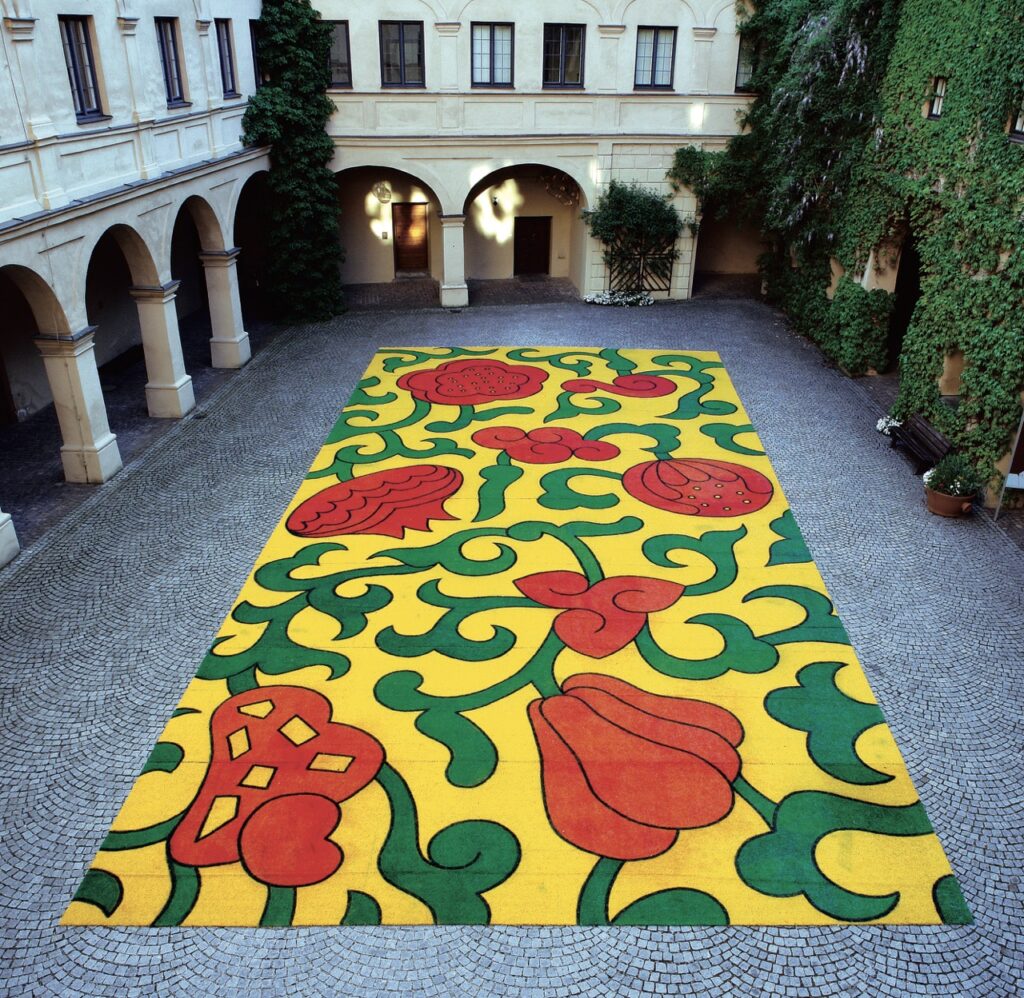 Seit sechs Jahrzehnten befasst sich der Künstler und Architekt Thomas Weil (*1944) mit dem Ornament in Architektur, Kunst und Design und entwickelt es stetig weiter. Bereits in den 1970/80er-Jahren verwirklichte er seine Ideen bei der Gestaltung der Außenanlagen des Olympischen Dorfs in München und in der Innenarchitektur des Ismaili Centre in London. Die Schau gibt einen Überblick über sein vielfältiges Schaffen. In einer eindrucksvollen Installation des Augsburger LAB BINÆR – Labor für Medienkunst werden seine Kunstwerke erstmals in animierter Form projiziert und scheinbar endlos vervielfältigt gezeigt. Bereits 2008 schuf Weil für das Museum mit „BLOOM IN“ einen prachtvollen Monumentalteppich; für die aktuelle Schau sind zwei neue Ornamentteppiche entstanden.