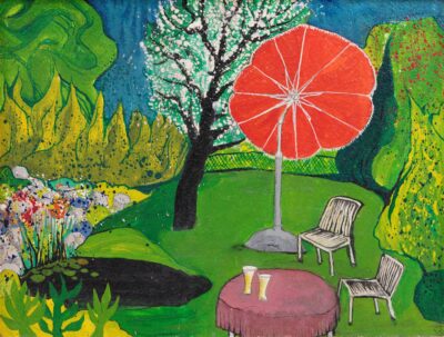 © Guido Zingerl, „Das Weißbiergartl“, 1979, Acryl auf Holzspanplatte, 30 x 40 cm