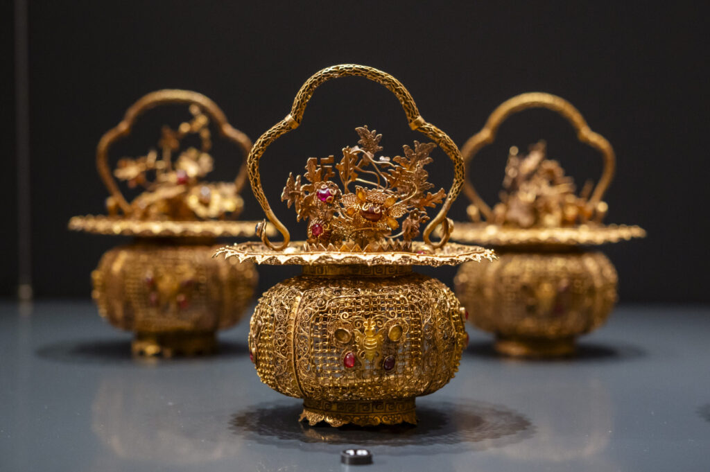 Goldene Filigran-Körbe mit Edelsteineinlage, Ming-Dynastie, Wanli-Zeit (1573-1620); Foto: Thomas Müller