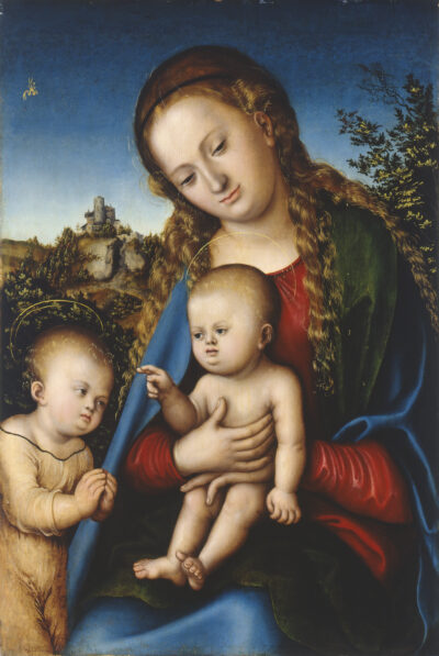 Lucas Cranach d. Ä.: Maria mit Kind und Johannesknaben, um 1512–1514, Tempera oder Öl auf Kreidegrund, 67,5x45,4×0,5 cm, Leihgabe der Bundesrepublik Deutschland, M. 337, Veste Coburg, Kunstsammlungen, Foto: Kunstsammlungen der Veste Coburg