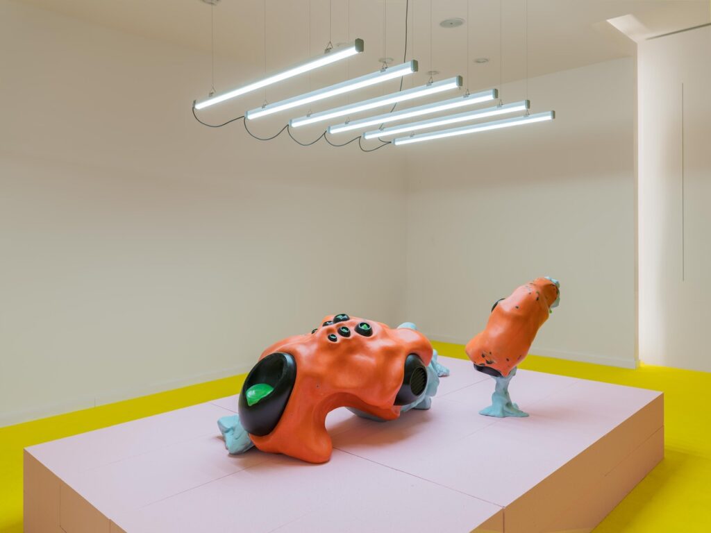 © Malte Bruns: „Born To Be Raised“, 2022, ASA, epoxy, fiberglass, UV resin, acrylics, 125 x 81 x 59 cm, 32 x 55 x 28 cm, 41 x 51 x 74 cm, Ausstellungsansicht im Kunstverein Ludwigshafen