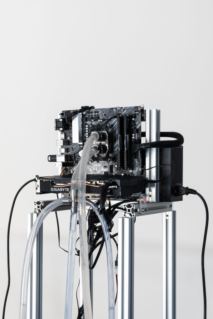 Tatjana Vall, morning rose, 2024, computer, water cooling system and external hoses, 30 x