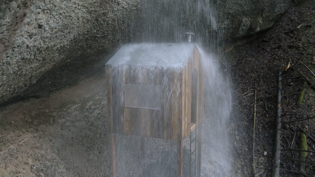 Jonas Maria Ried & Florian Post: »Under Falling Water«, Filmstill aus dem Film zum gleichnamigen Projekt, 2024, © Jonas Maria Ried & Florian Postl