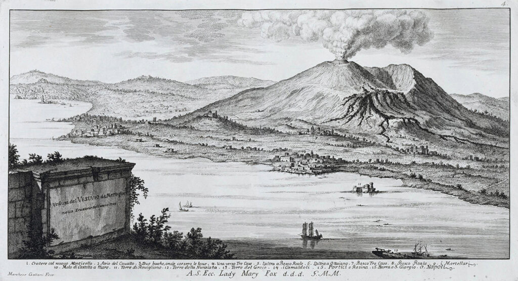 Abb: Ansicht des Vesuvs von Süden während des Ausbruchs von 1754, Filippo Morghen, Antoine Cardon