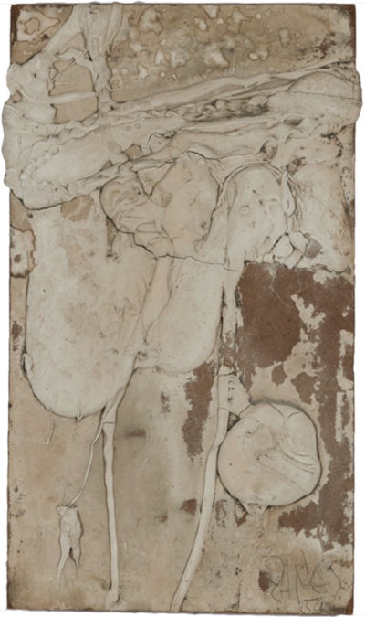 Herbert Zangs (1924-2003) wandte sich nach frühen Erfolgen mit figurativer Malerei Mitte der 50er Jahre parallel Experimenten mit monochrom-weißen Arbeiten zu. Mit diesen „Verweißungen“ betrat er Neuland: Neben gebrauchten, vorgefundenen Objekten, die er mit weißer Farbe überzog, beschäftigten ihn die vielfältigen Möglichkeiten, mit weißen Farbmassen reliefartige Werke zu produzieren.
