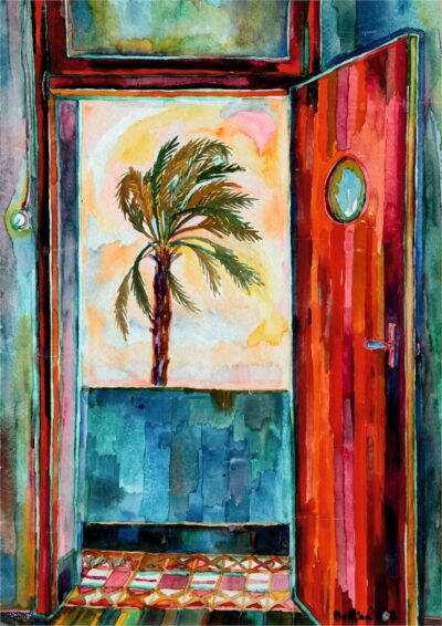 Bettina Heinen-Ayech: „Palme im Wüstensturm“, Aquarell auf Papier, 1973; Foto: Daniela Tobias