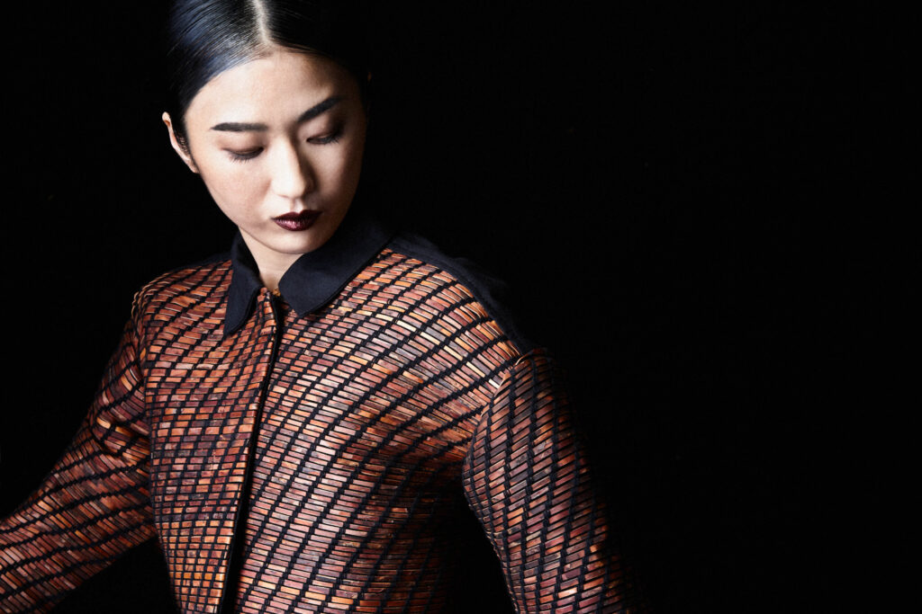 Jacke aus gewebten Baumrindestreifen, Charlotte Wenig in Zusammenarbeit mit dem Max-Planck-Institut. Foto: Patrick Walter