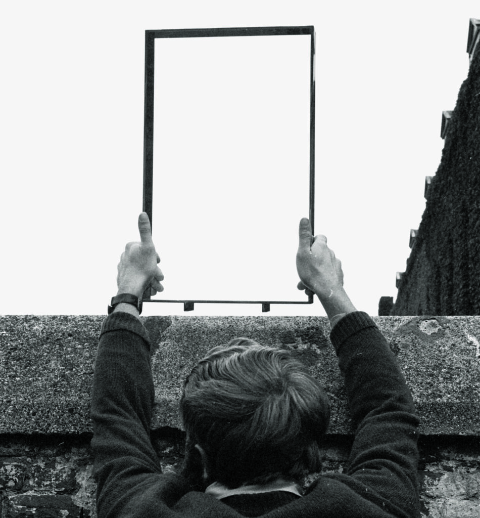 Jef Verheyen, sein Werk Le Vide (Die Leere) gegen den Himmel haltend, ca. 1965; Foto: Gerald Dauphin / Collection Fotomuseum Antwerpen