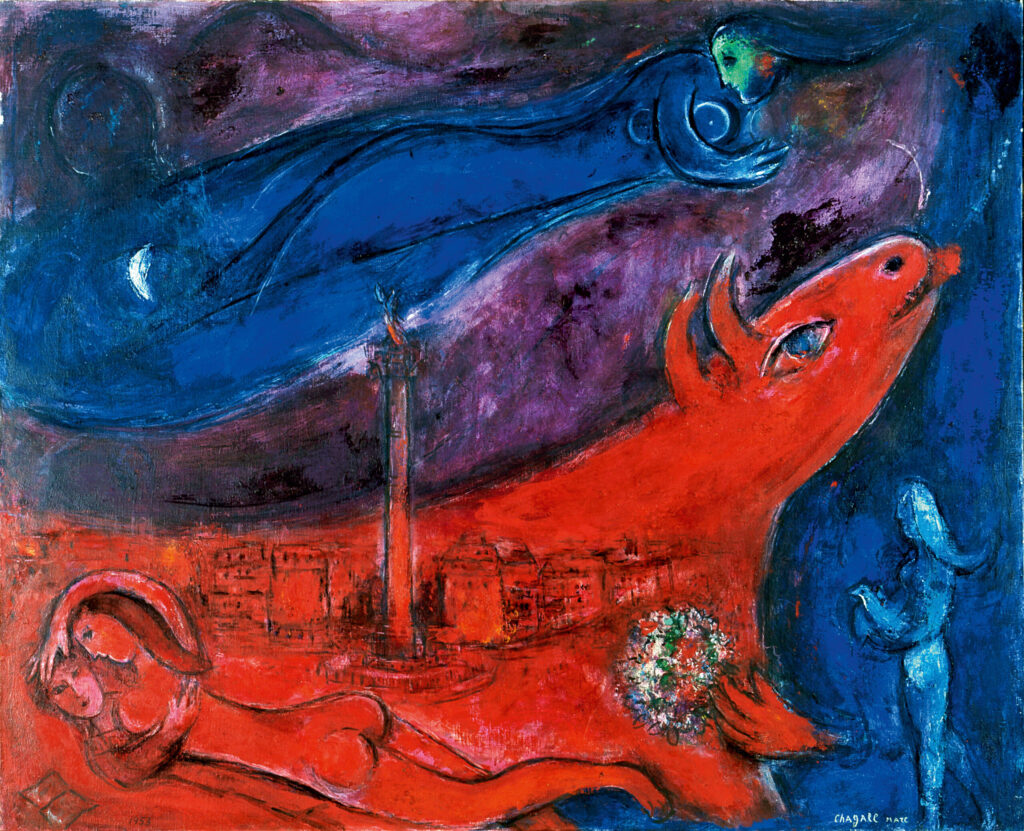 Marc Chagall: „Die Bastille“, 1953, Öl auf Leinwand, Privatsammlung; © Comité Chagall / VG Bild-Kunst, Bonn 2024