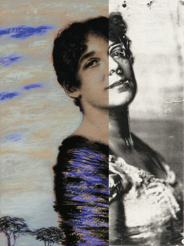 Abb: Franz von Stuck (1863-1928), Bildnis der Frau des Künstlers, Mary Stuck, um 1916, Kombination des Gemäldes mit einer fotografischen Bildnisstudie des Künstlers