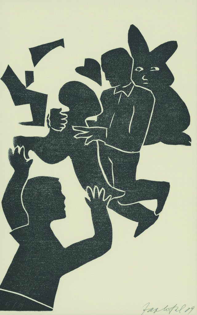 Svato Zapletal, Franz Kafka. Ein Landarzt. Das Urteil, Holzschnitt aus Mappenausgabe zum 51. Buch. Hamburg: Svato Verlag 2009 Kunstforum Ostdeutsche Galerie Regensburg © Svato Zapletal / Svato Verlag, Foto: KOG