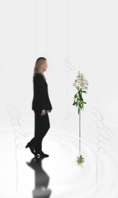 Die Ausstellung zeigt weiße Lilien, deren Wasserversorgung durch die Bewegung der Ausstellungsbesucher*innen im Raum beeinflusst wird. Dieses durch hybride Sensoren hergestellte Bedingungsverhältnis zwischen menschlichem Verhalten und der Lebensdauer der Lilien kann unter anderem dazu einladen, über die Fragilität von Biokonnektivitäten zu reflektieren, die natürlichen Ökosystemen zugrunde liegen, aber auch über die Wirkmacht kollektiven Verhaltens als positive Gestaltungschance.