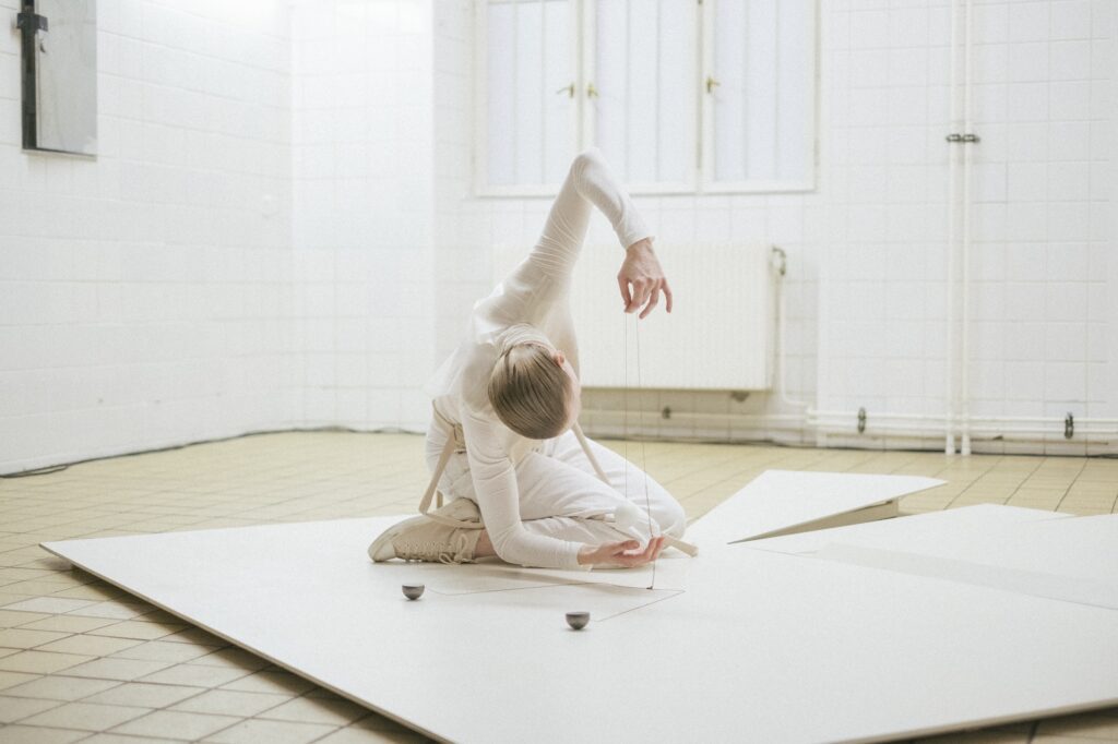 Zentrales Thema der Arbeiten von Iris Dittler ist der RAUM. Ein Frauenkörper, der tanzt, gleitet, gleißt, sich bewegt als wäre er unter Wasser. Die Grenzen verschwimmen. Nicht nur zwischen Außen und Innen. Auch zwischen den Ebenen von Zuständigkeiten: Da ist die Choreografin als Zeichnerin, als Tänzerin präsent, da wird der Körper zum Mudra - zum meditativen Zeichen - und steht im selben Moment doch für sich selbst.
