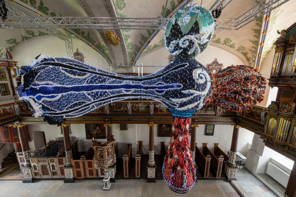 Joana Vasconcelos, Valkyrie Thyra, 2023. Copyright: VG Bild-Kunst, Bonn 2024, Foto: Kapelle Schloss Gottorf, Fotograf Marcus Dewanger