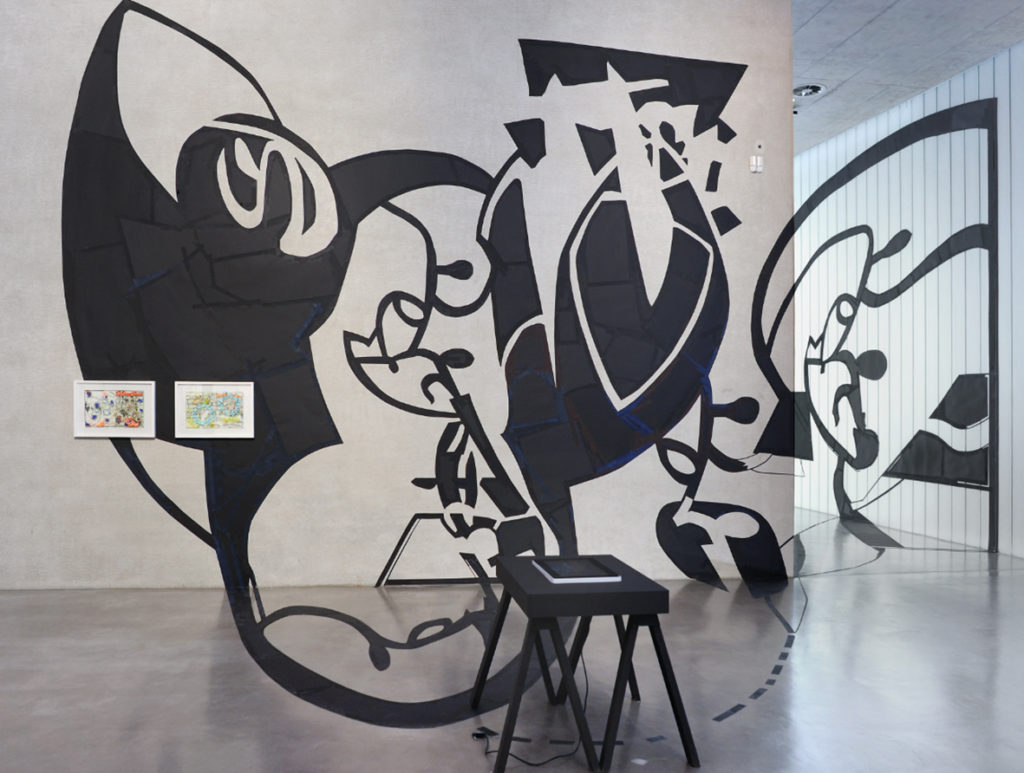 Der Reiz des Wandels und der Verwandlung fasziniert seit jeher die Menschen. Heute finden sich neue Spielräume im Internet, dort kann das eigene Ich in unterschiedlichsten Facetten erlebt werden. Zugleich werden Fragen nach Authentizität und Inszenierung, aber auch nach Zugehörigkeit sowie Ab- und Ausgrenzung gestellt. Mandernach überträgt diese Fragen auf seine Kunst. Auch seine Bilder und Zeichnungen zeigen sich wandelbar, wenn sie von Trickfilmprojektionen, Papierschnitten und Malereien überlagert werden. So ergeben sich in seinem über- dimensionalen Mobile Gesamtbilder, die durch tanzende Bewegung immer neue Konstellationen von Schrift- und Bildzeichen vor uns entstehen lassen. Es fügen sich abstrakt anmutende Bildbestandteile zu etwas gegenständlich Lesbarem zusammen.