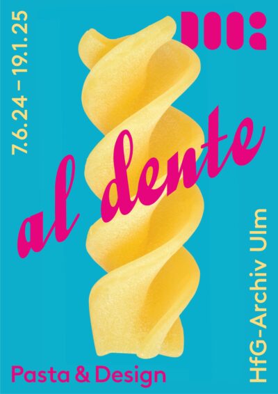Die Ausstellung „al dente. Pasta & Design“ im HfG-Archiv Ulm lädt mit einem multisensorischen Erlebnis dazu ein, die vermeintlich uns allen bekannte Teigware neu zu entdecken und Spaß an einer formschönen Gestaltung von Nudel und Objekt zu finden.