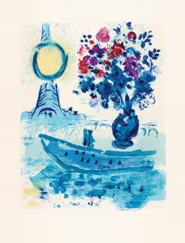 Abb: Marc Chagall, Bateau-Mouche au Bouquet (aus »Regards sur Paris«), 1962, Mourlot 352, © VG Bild-Kunst, Bonn 2022